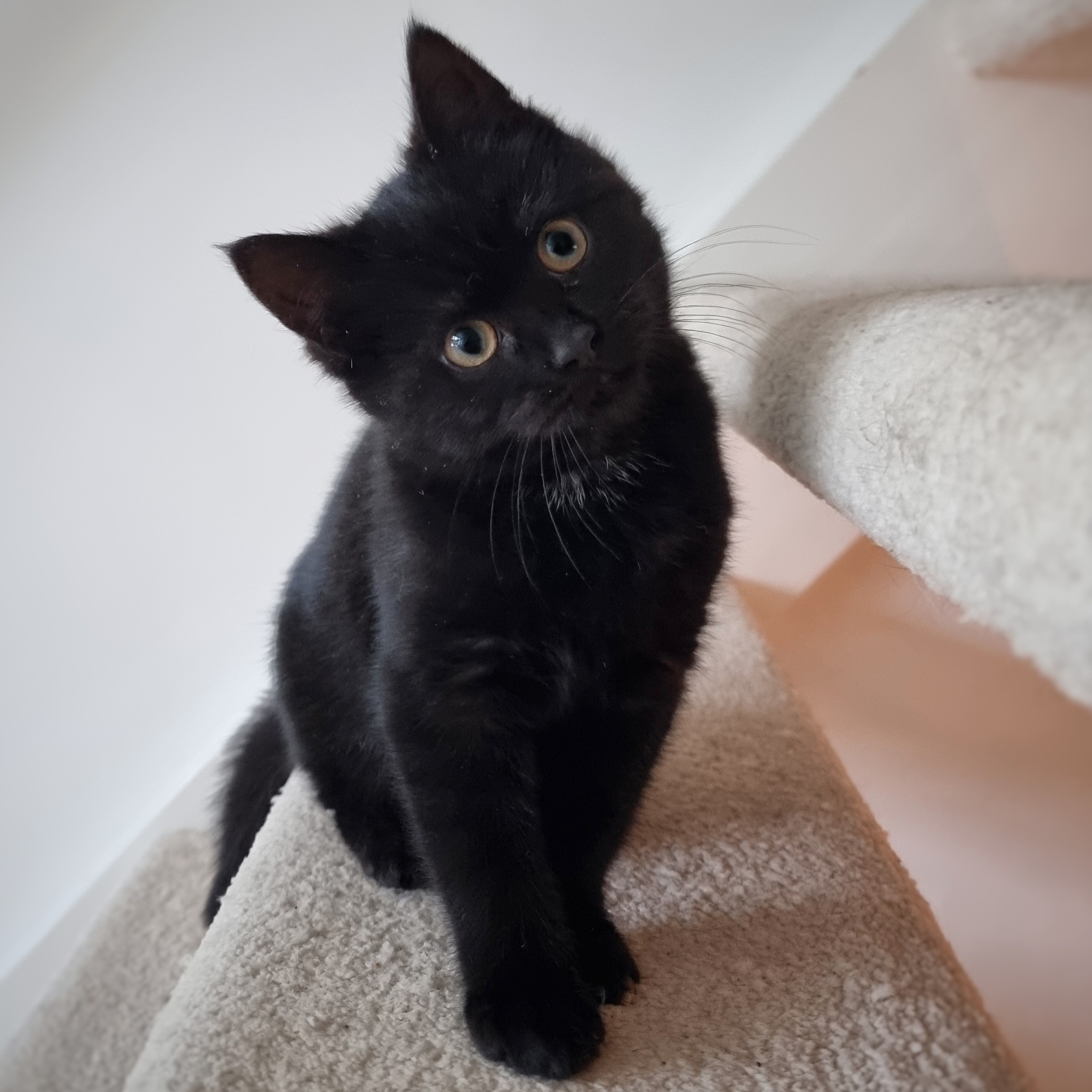 Karakterbeschrijving gastgezin: Ravi is een nieuwsgierig kitten met bordenvol energie. Ze is speels, ondernemend en altijd in voor actie. Samen een balletje gooien of rondrennen door de kamer vindt ze fantastisch. Af en toe komt ze bij je op schoot liggen, maar heeft haar eigen mandje wel voorkeur. Wanneer je haar dan aanhaalt, begint ze tevreden te spinnen. Soms kan Ravi schrikkerig reageren, maar dit is vaak van korte duur.  Ze deinst dan even terug en gaat daarna vrolijk verder met waar ze mee bezig was, alsof er niets gebeurd is. We zoeken voor Ravi een gezellig huishouden waar voor haar de ruimte is om haar energie kwijt te kunnen, maar ook een plek waar ze mag genieten van ontspanning. We plaatsen Ravi bij een jonge, sociale/speelse soortgenoot die het heerlijk vindt om samen met haar te ravotten. Ze kan eventueel bij kinderen vanaf 6 jaar oud geplaatst worden. Op den duur zal Ravi naar buiten willen om de groene/rustige omgeving te ontdekken.